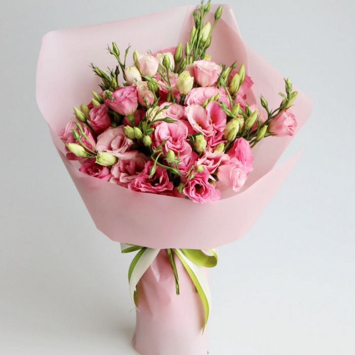 pembe lisyantus buketi ve yeşillikler kütahyanın tüm noktalarına anında teslimat 7/24 siapariş almaktayız.Paketleme rengini lütfen belirtiniz.